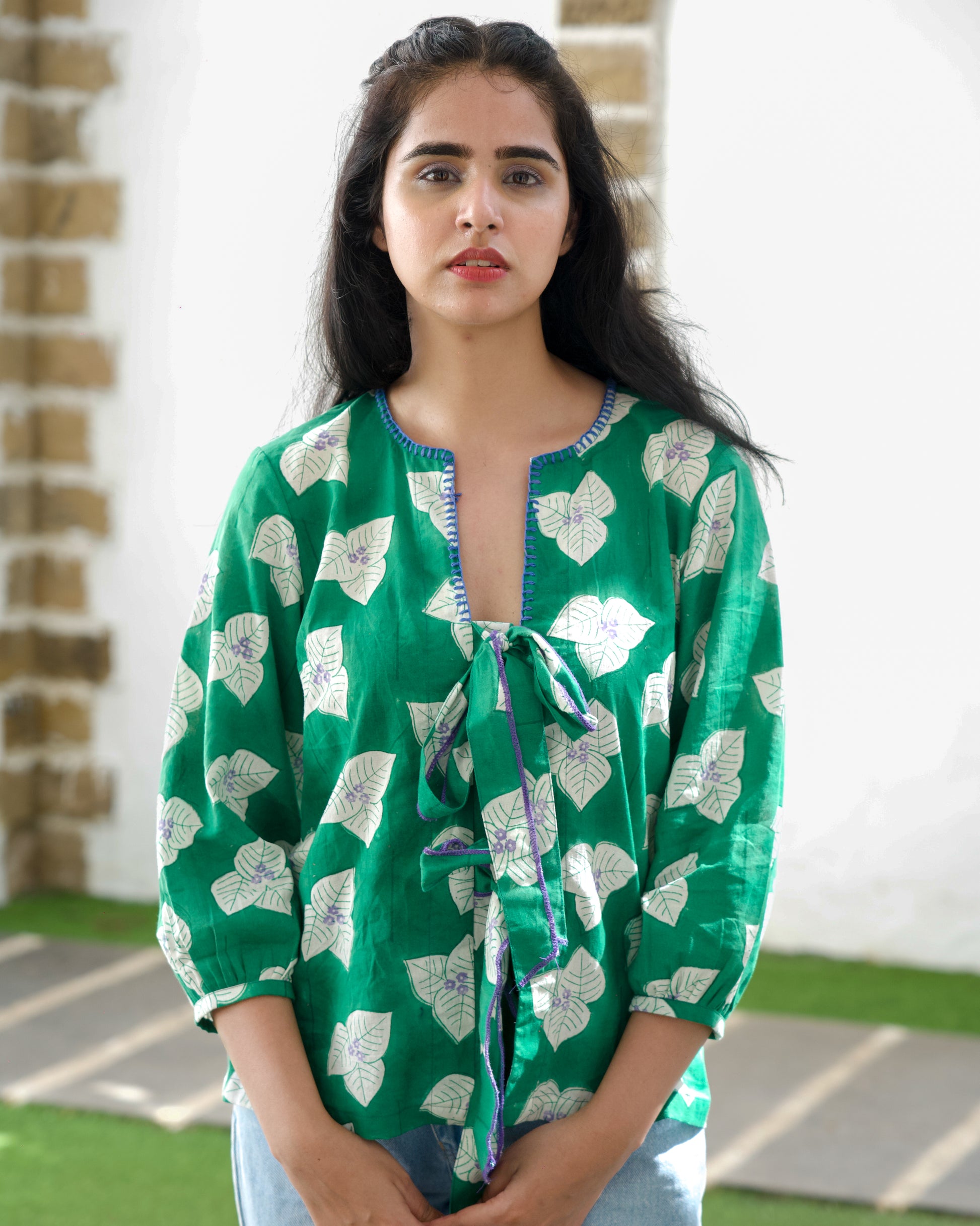 Hand embroidery at the neckline adds delicate detail and artisanal flair